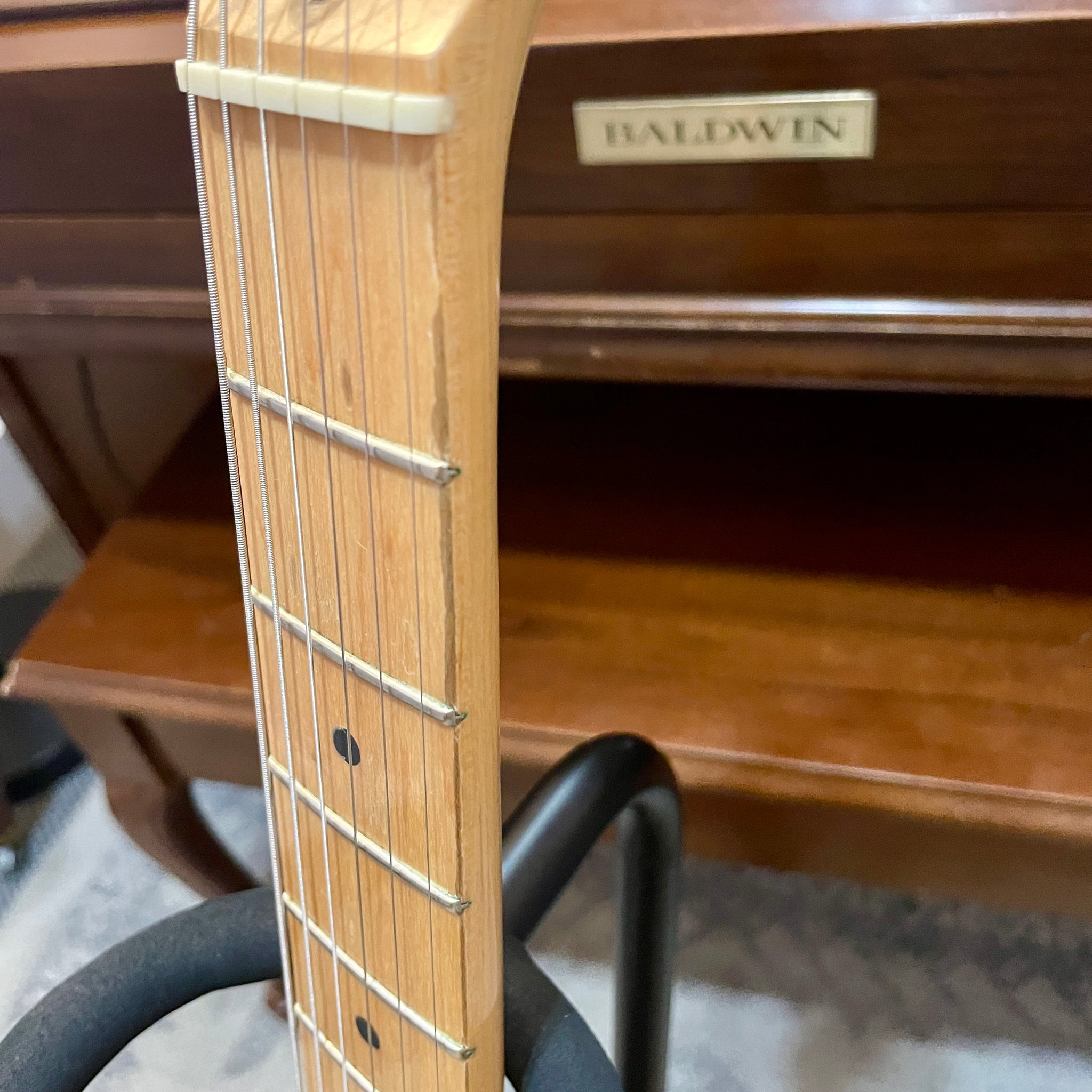 A minor ding or two on the headstock, some regular playing wear on the neck, in overall great condition for its age! |