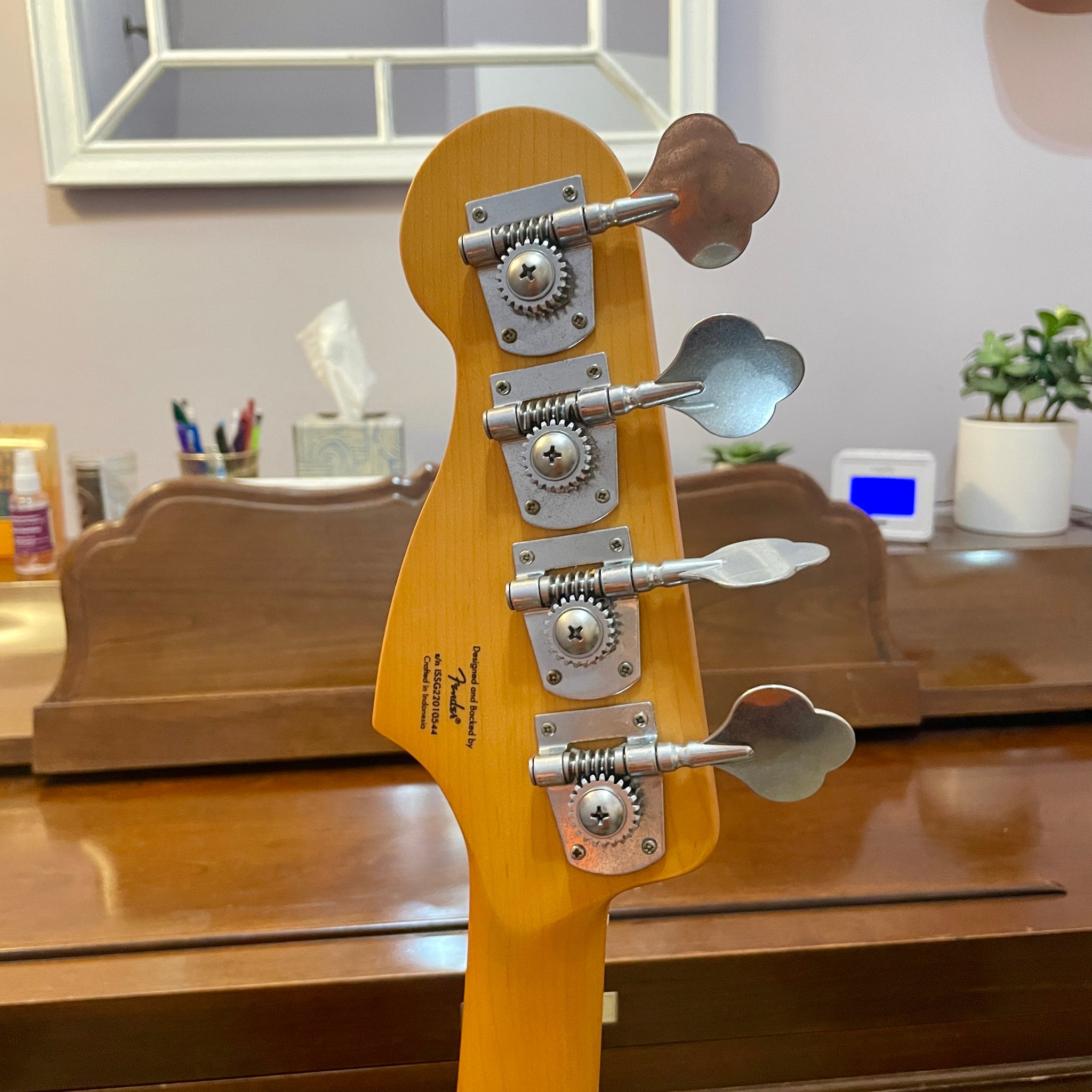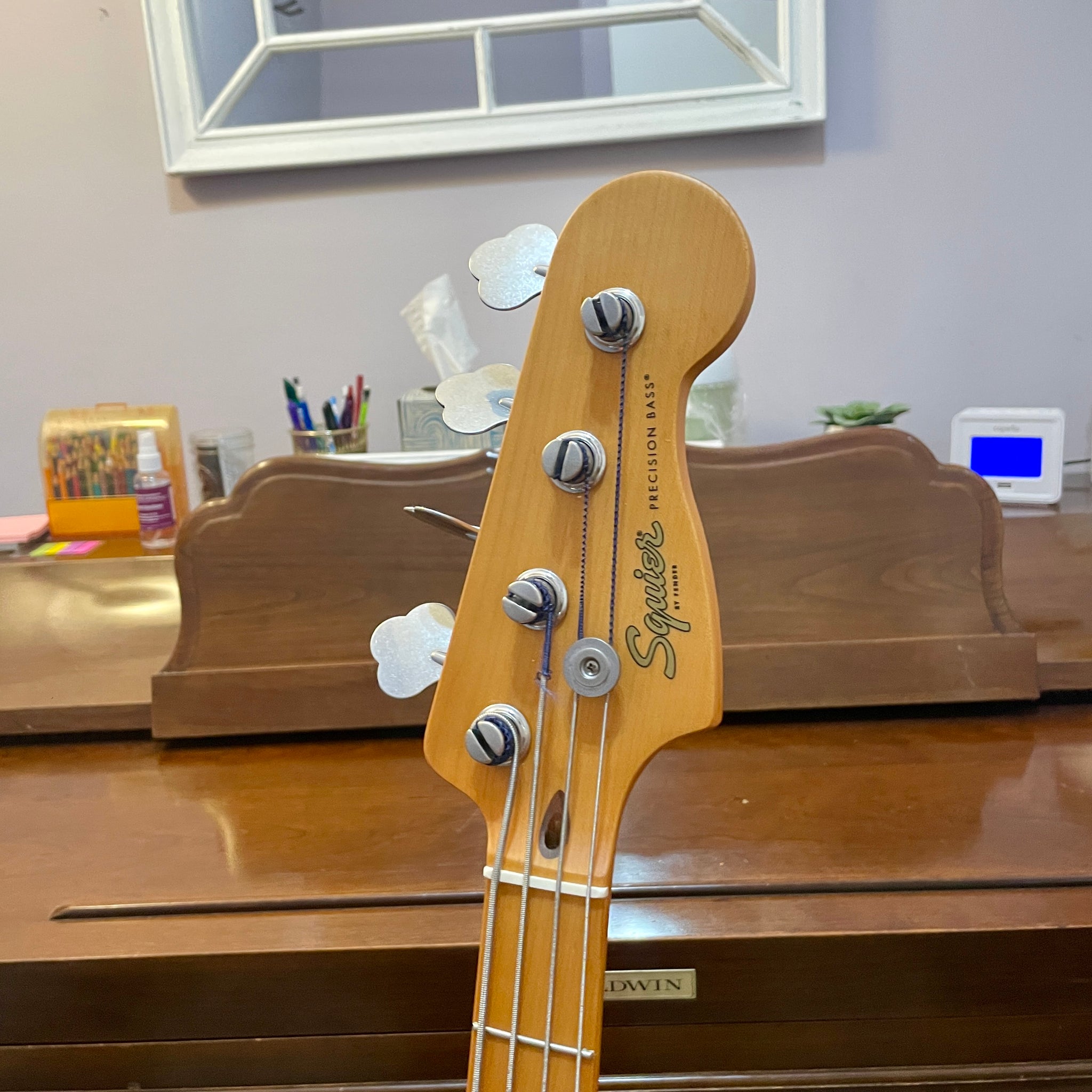 A Squier that stands up to most Fenders! We love the sound of the upgraded Seymour Duncan pickups on this Precision Bass as well as the feel of the slim, comfortable C-shaped neck. It's currently strung with half-wound strings and has a great, classic tone that's perfect for gigging or recording.
