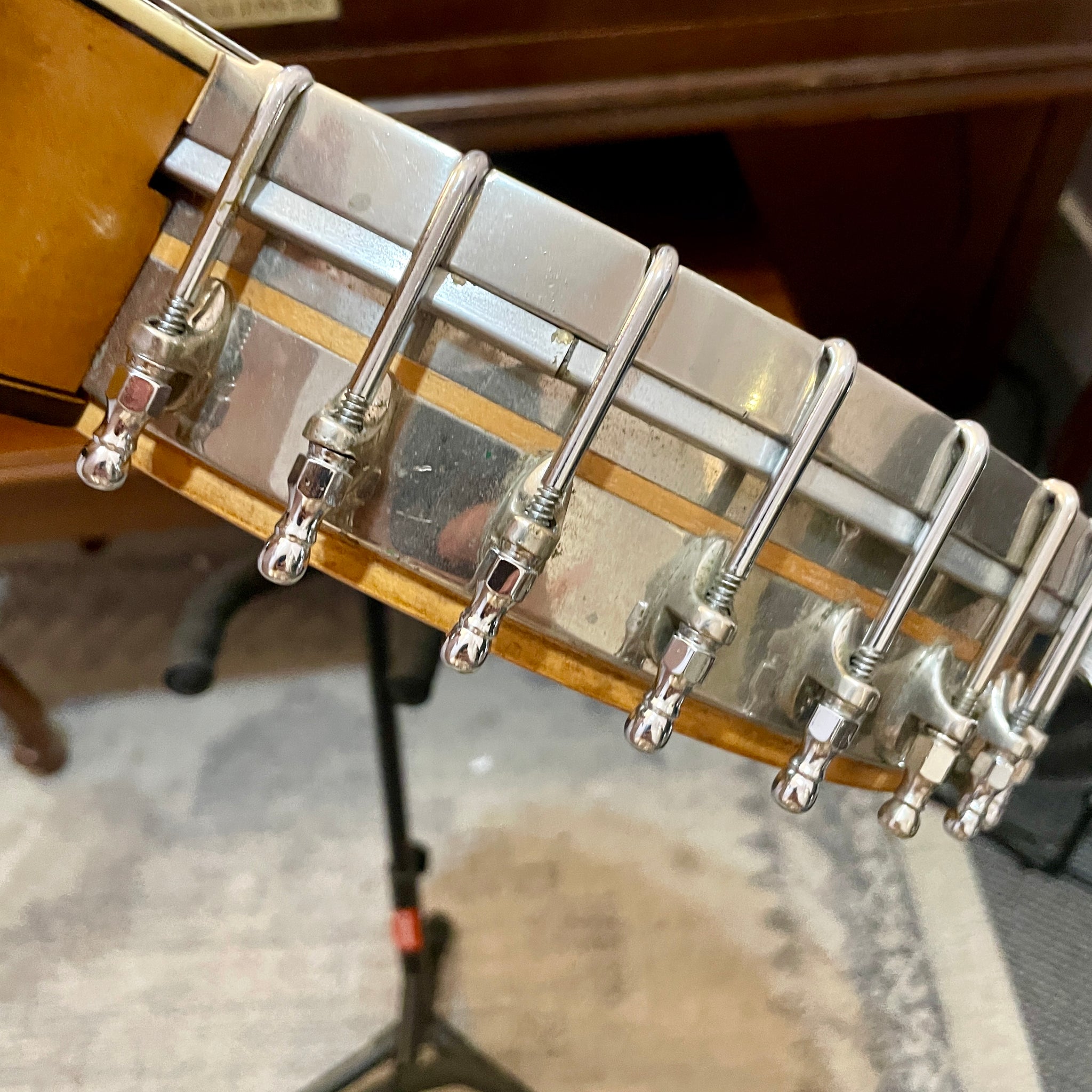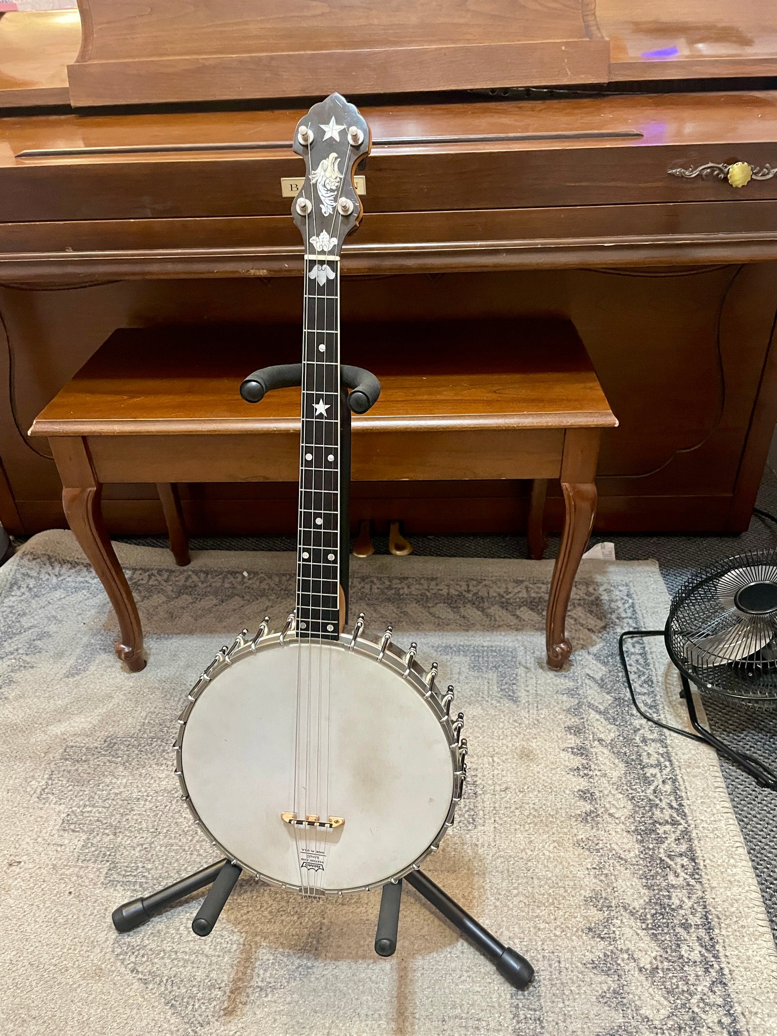 This little tenor banjo truly is something special! It's one of the earliest Vega-made tenors around and is possibly the only Vega Tubaphone with its beautiful Gryphon peghead inlay, a design traditionally used for the White Ladye banjo. This Fairbanks is in very good cosmetic condition and plays beautifully with nice, low action all the way up the neck.